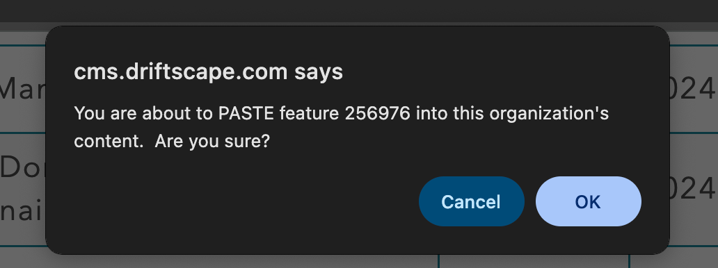 A confirmation dialog box will appear asking you to confirm that you want to paste the POI into the target organization.