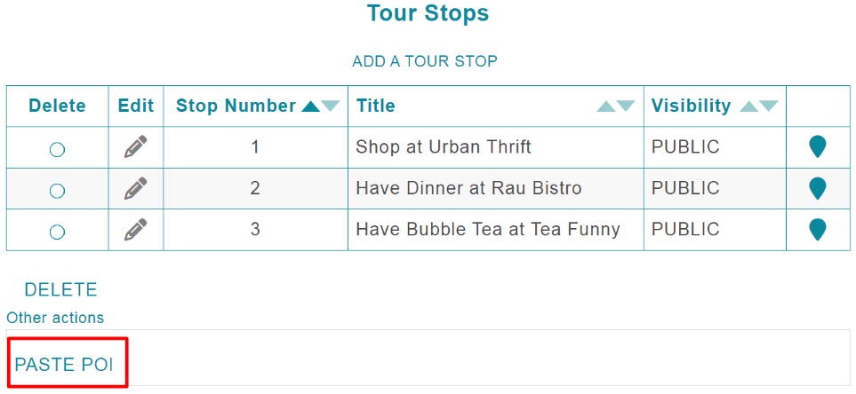 Choose PASTE POI, and the POI will be added as a new Tour Stop at the end of the tour.